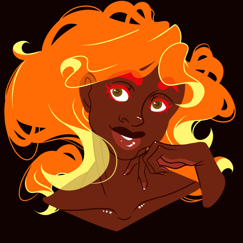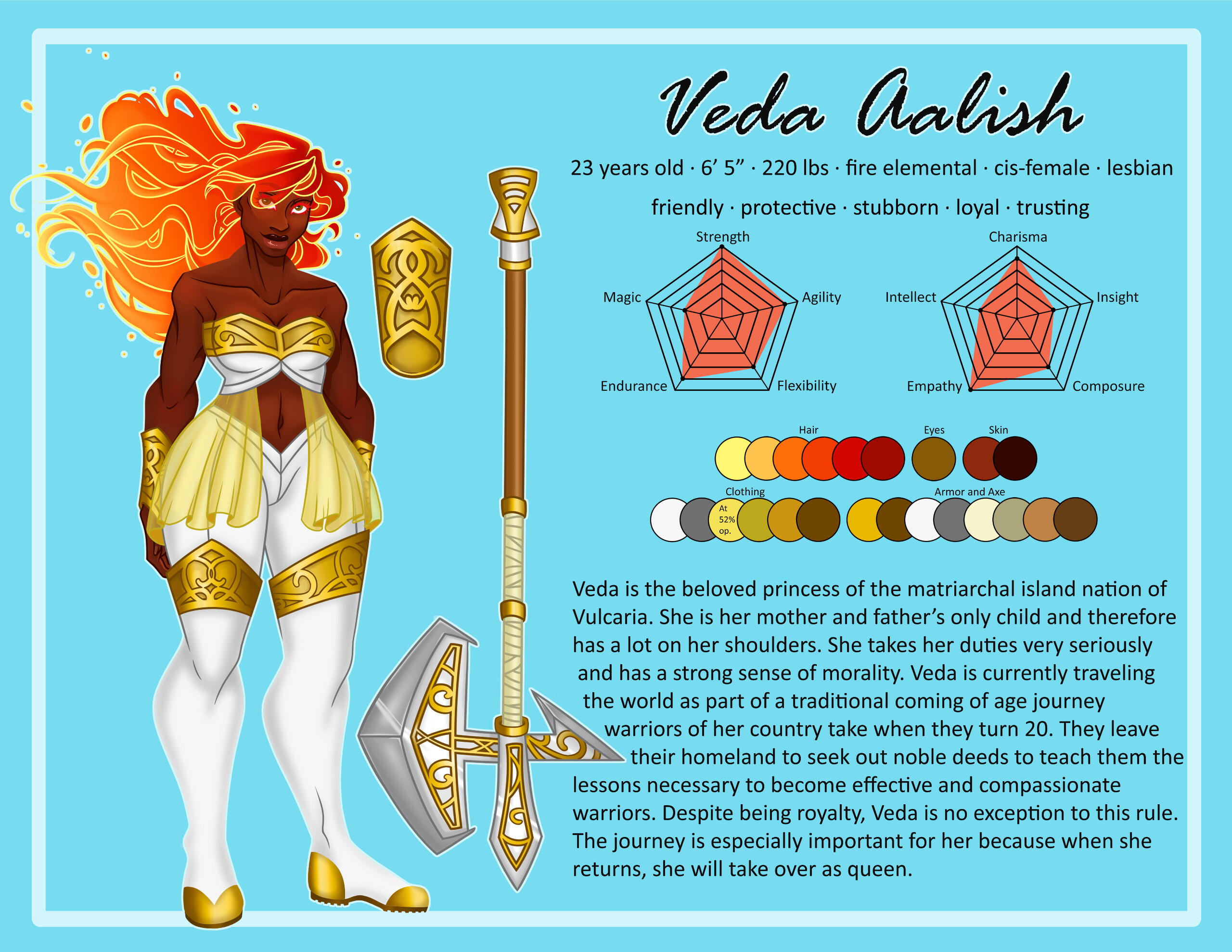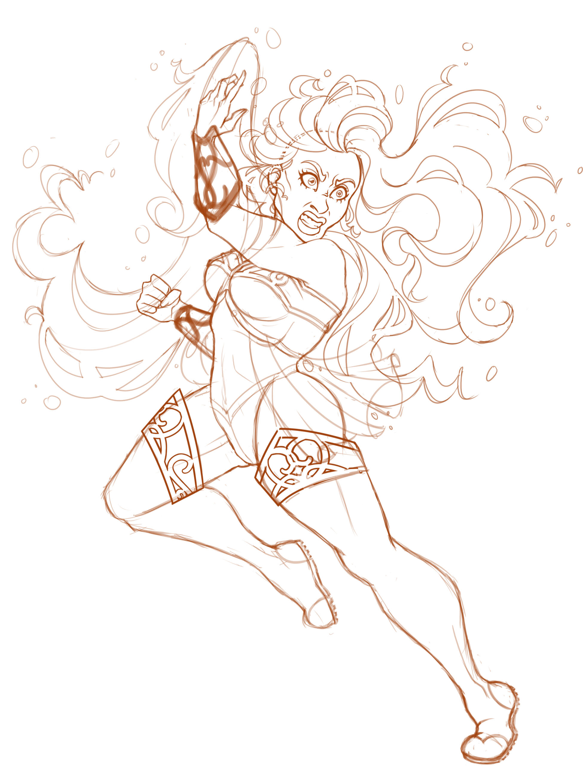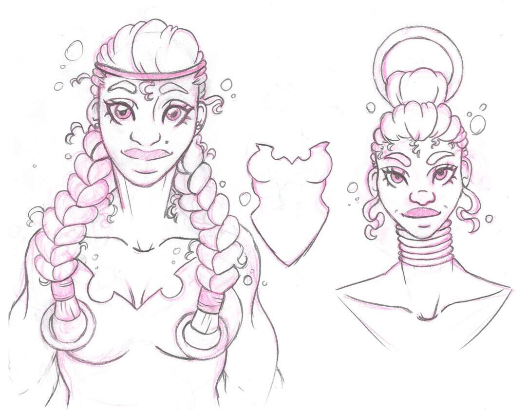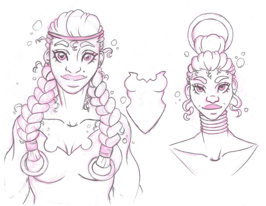 This is a sketch I made when I was thinking about how Vulcarians would create different hairstyles. Since they already have a culture of using decorative metal (see Veda's armor), I decided they would use magically enhanced metal rings that would be capable of staying in their fire the way a hairband or such would stay in real hair.