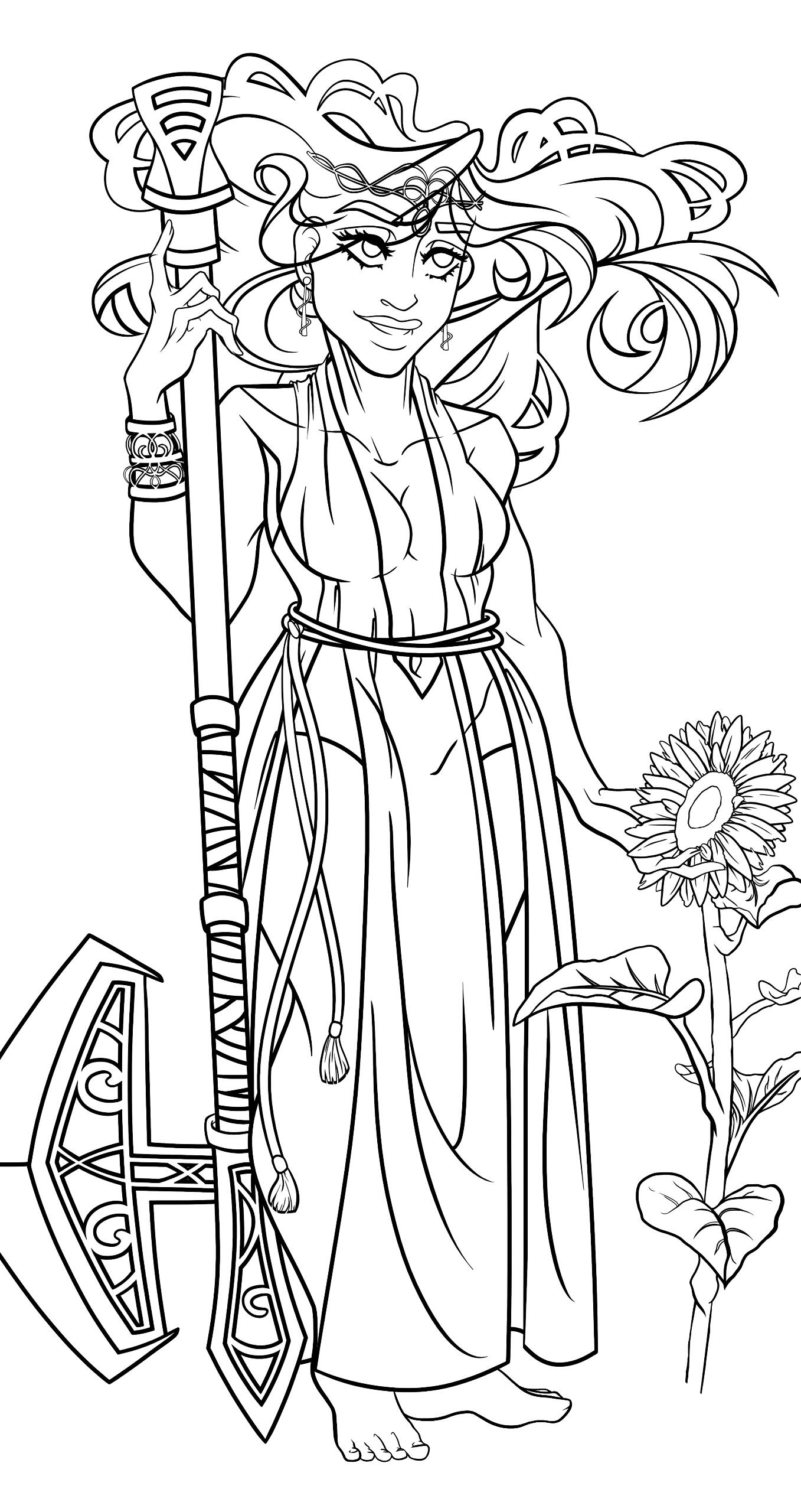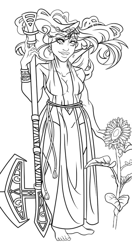 There was a point in time where I was going to make a tarot card illustration for Veda using the Queen of Wands. I obviously never finished it, but here's the linework!